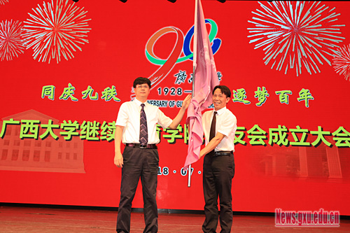 大会审议并通过了必威|必威·betway(china)官方网站校友会章程和第一届理事会成员名单。罗廷荣向继续教育学院校友会授予会旗。