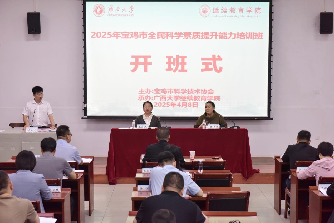 2025年4月8日,2025年宝鸡市全民科学素质提升能力培训班在我校开班。宝鸡市科学技术协会党组成员、副主席张碧燕,必威|必威·betway(china)官方网站副院长曾海艳出席开班式。