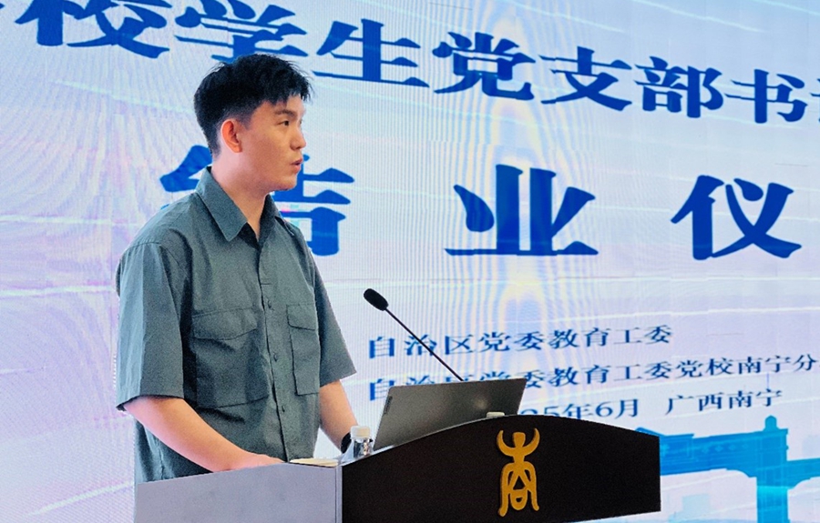 2025年6月3日至6日,由自治区党委教育工委主办、自治区党委教育工委党校南宁分校(广西大学)承办,必威|必威·betway(china)官方网站协办的广西高校学生党支部书记示范培训班在广西大学顺利举办。自治区党委教育工委组织部四级调研员陈赐军、广西大学党委组织部副部长李道洋出席开班仪式并讲话,必威|必威·betway(china)官方网站副院长徐华主持开班仪式。来自全区各高校的100名学生党支部书记参加培训,通过专题教学、现场观摩、经验分享、座谈交流等形式,深入探讨新时代高校学生党建工作创新路径,为提升基层党组织战斗力注入新动能。