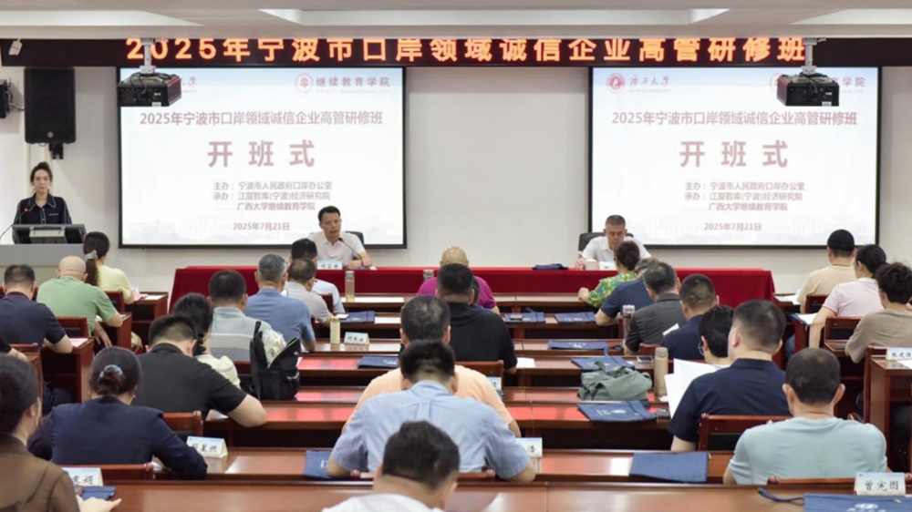 7月21日,2025年宁波市口岸领域诚信企业高管研修班在必威|必威·betway(china)官方网站开班,宁波市人民政府口岸办公室二级巡视员田雷同志,必威|必威·betway(china)官方网站院长闭富春同志出席开班式并讲话。