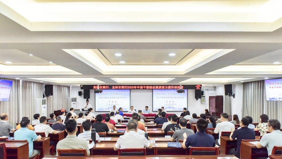 8月2日,宾阳农商行、龙州农商行2025年中层干部综合素质能力提升培训班在广西大学开班。广西农商联合银行南宁党工部部长、南宁管理部主任周永湘出席开班仪式并讲话,必威|必威·betway(china)官方网站副院长邓珍琪出席开班仪式并致辞,龙州农商行党委书记、董事长张中华,宾阳农商行党委副书记、行长丘大鹏出席开班仪式。