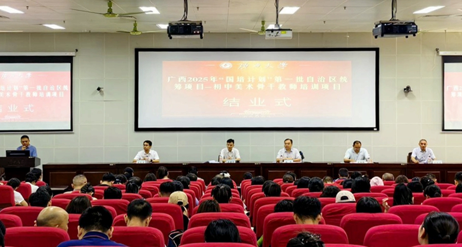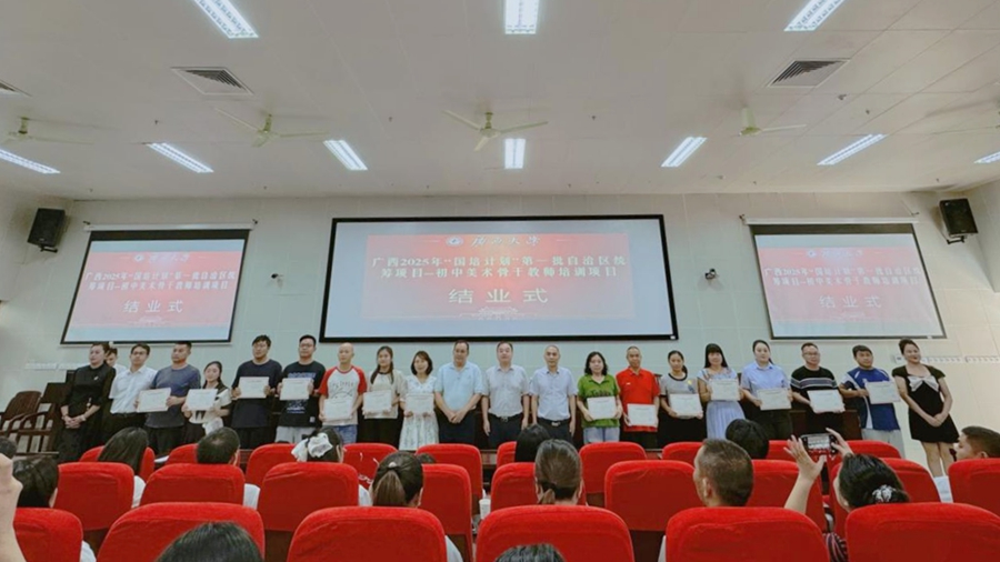 “国培计划”是落实《教育强国建设规划纲要(2024—2035年)》的重大实践。9月24日,由广西壮族自治区教师培训中心主办,广西大学承办的广西2025年“国培计划”第一批自治区统筹项目——初中美术骨干教师培训班在我校结业,必威|必威·betway(china)官方网站副院长徐华出席结业式并讲话,必威|必威·betway(china)官方网站梁君华老师主持结业式。