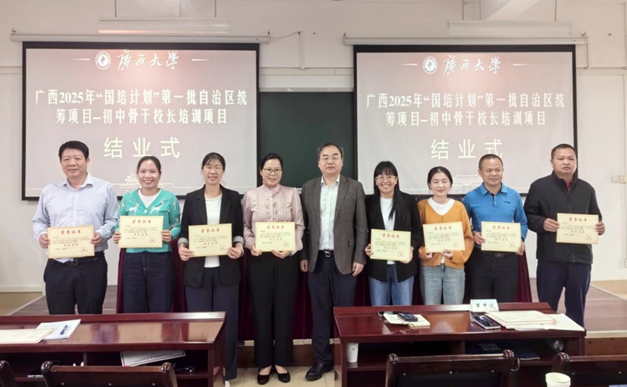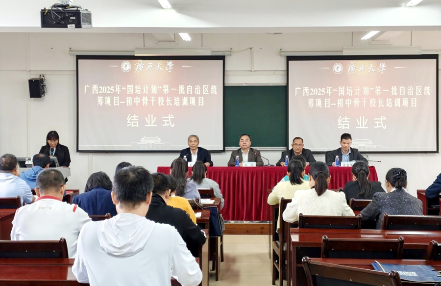 “国培计划”是落实《教育强国建设规划纲要(2024—2035年)》的重大实践。2025年10月24日,由广西壮族自治区教师培训中心主办,广西大学承办的2025年“国培计划”第一批自治区统筹项目——初中骨干校长培训班在我校结业。必威|必威·betway(china)官方网站副院长徐华出席结业仪式并讲话。