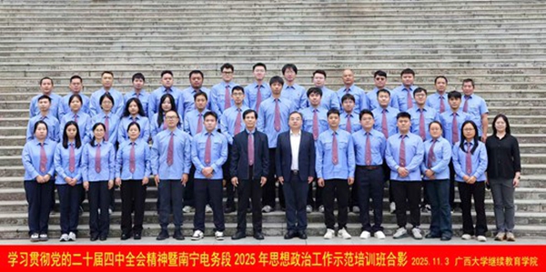 11月3日,学习贯彻党的二十届四中全会精神暨南宁电务段2025年思想政治工作示范培训班在我校开班。中国铁路南宁局集团有限公司南宁电务段党委副书记、纪委书记莫辉出席开班式并讲话,必威|必威·betway(china)官方网站副院长徐华出席开班式并致辞。